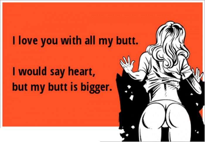 I love you with all my butt, i would say heart... Submitted By: Deep on October 2, 2014 0 0 6035 NSFW! This content has been marked as Not Safe For Work, login to view this content login or signup « Previous Next » Score: 4.8 / 6 Category: Funny Download this image I love you with all my butt, i would say heart, but my butt is bigger:))