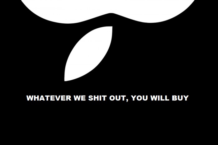 Whatever we shit out you will buy. Submitted By: Deep on September 17, 2014 0 0 7004 NSFW! This content has been marked as Not Safe For Work, login to view this content login or signup « Previous Next » Score: 4.8 / 7 Category: Funny Download this image The Apple logo explained. Whatever we shit out you will buy.